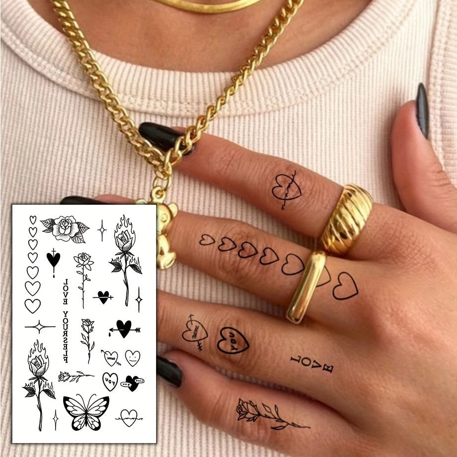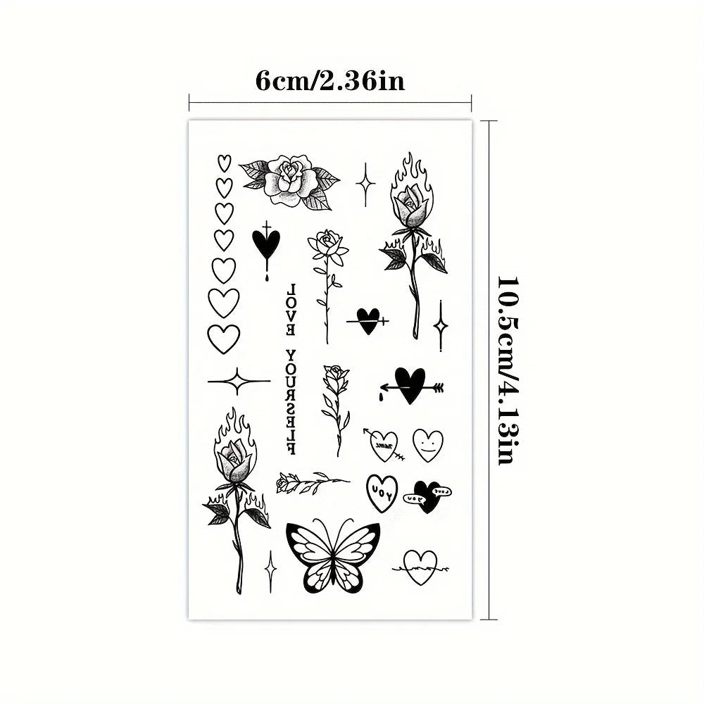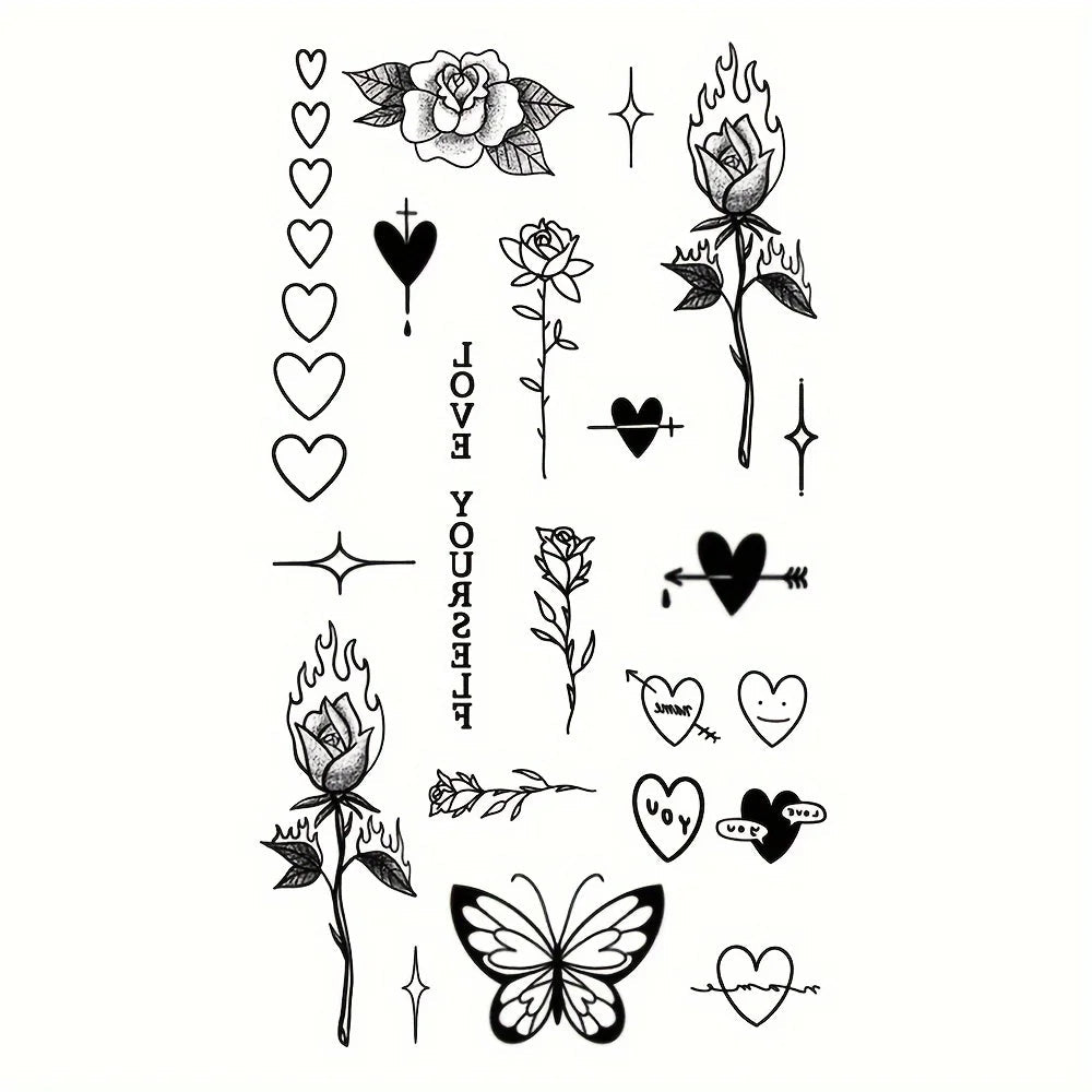 1/5/12PCS Waterproof Temporary Tattoo Sticker Rose Flame Thorns Love Butterfly fake tatto flash tatoo finger for girl women men