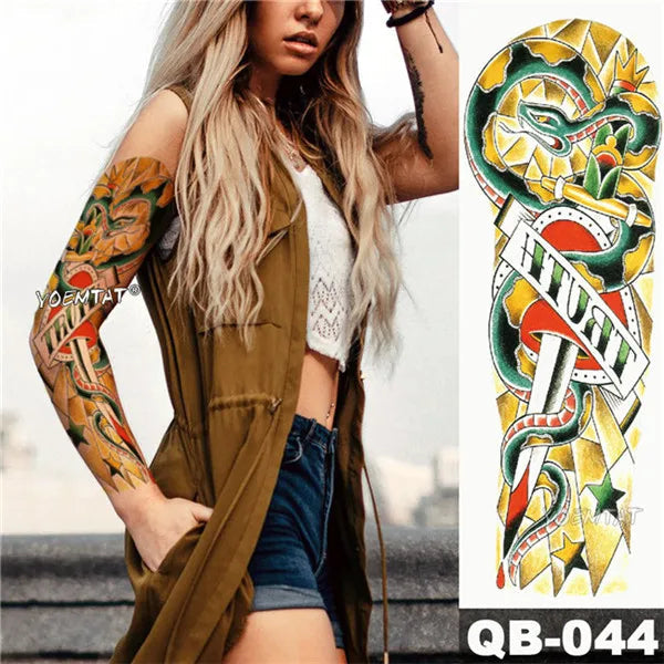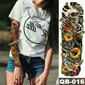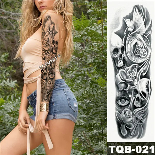 48X17cm Temporary Tattoo Sticker Skull Pumpkin halloween Tattoo with Arm Body Art Big Sleeve Large Fake Tattoo Sticker