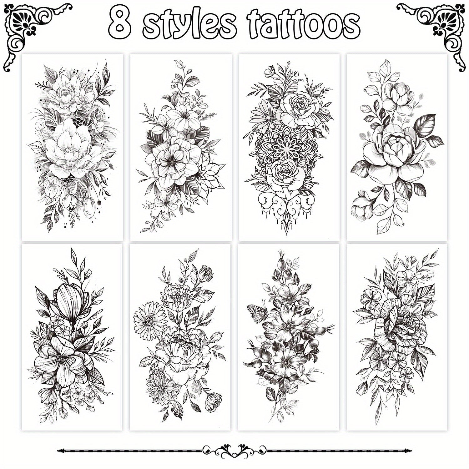 Floral Temporary Tattoos - 8 Sheets Waterproof Half Arm Sleeve Tattoos