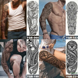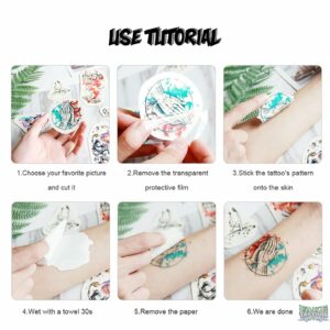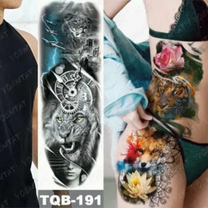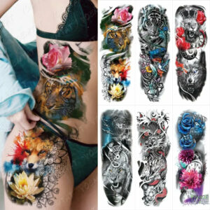 6pcs Color Tiger Wolf Large Arm Sleeve Tattoo Prajna Dragon Waterproof Temporary Tattoo Sticker Body Art Fake Tatoo Men Women