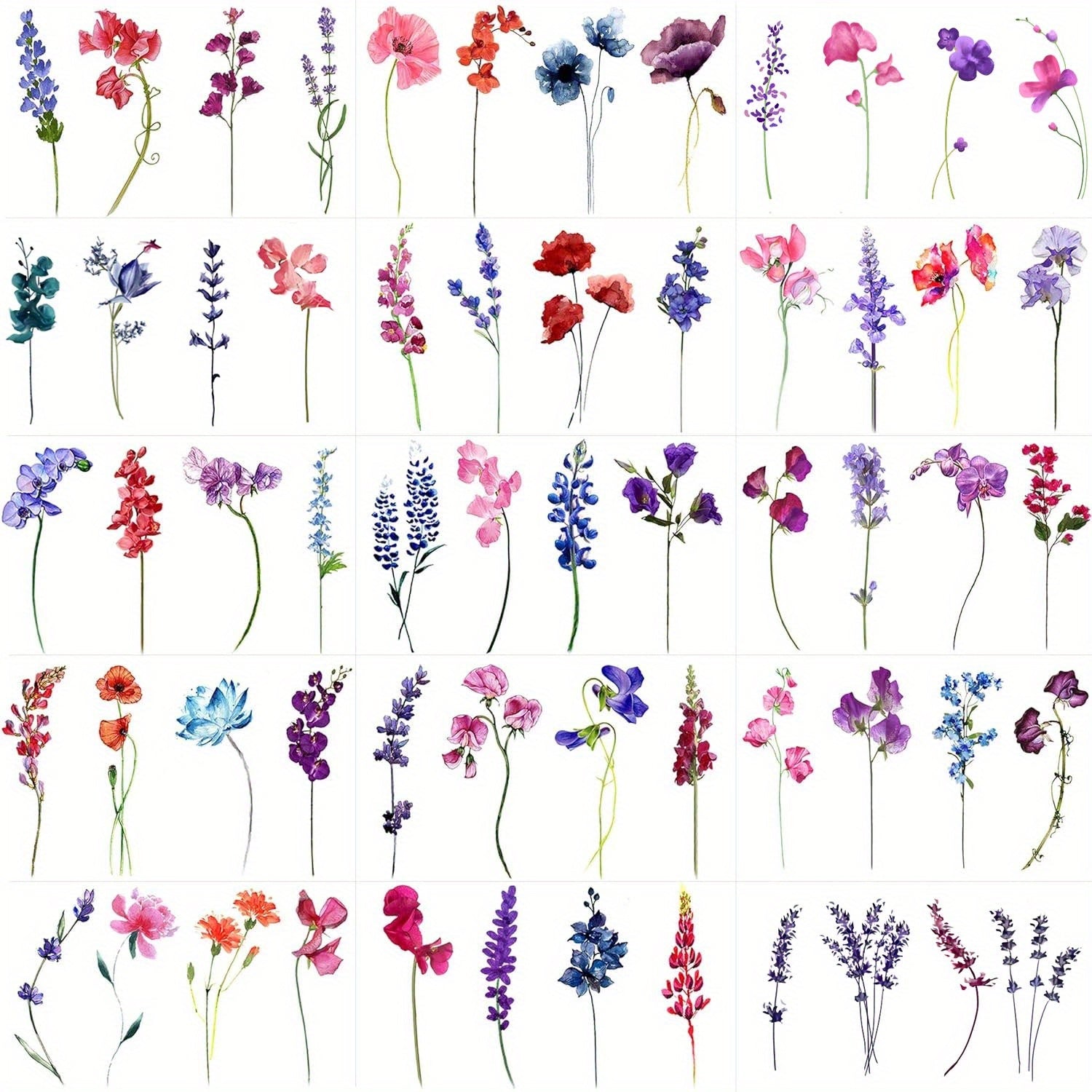 Watercolor Flower Temporary Tattoos - 15 Sheets Floral Design for Women